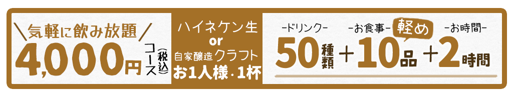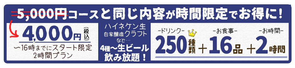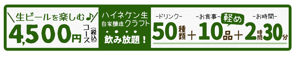 4000円コースより時間ゆっくり!生ビール飲み放題♪
